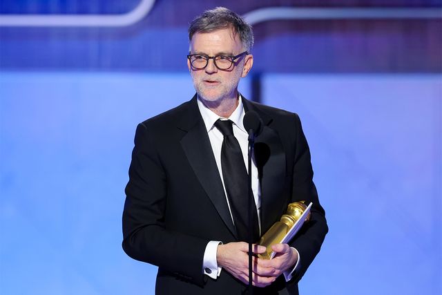 Rhea Seehorn won the Golden Globe for best actress in a TV drama for her performance as Carol Sturka in “Pluribus” on Apple TV. This is her first Globe nomination and win. Seehorn was overcome with emotion when she took the stage to accept the award. Looking at a sheet of