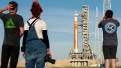 Huge crowds are gathering around the Kennedy Space Centre to see the launch of the historic moon mission.