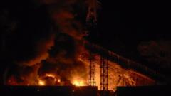 Plumes of smoke are seen rising from multiple sites, though the cause remains unclear.