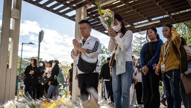 HONG KONG - Hong Kong's leaders oversaw a ceremony on Saturday to mourn the at least 128 people killed in a high-rise apartment complex fire, a toll that is likely to rise further with 200 others still unaccounted for days after the tragedy.