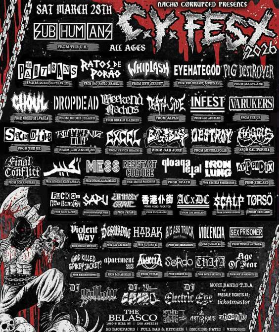Last year, promoter Ignacio Rodriguera, who goes by the name Nacho Corrupted, announced plans for the rescheduled version of CY Fest, a Los Angeles punk festival that was originally supposed to take place in 2025. The 2026 CY Fest, scheduled to come to the Belasco later this