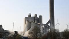 Onlookers watched as the cooling tower of the decommissioned Frimmersdorf power plant in Germany collapsed.